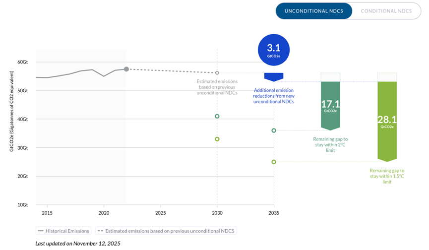 尽管全球煤电占比下降为长期维度下的趋势,然各国家和地区由于国情各异,在实施清洁能源装机和煤电退出计划方面的进展与行动不尽相同,部分具有影响力的大国在清洁能源装机行动等方面的迟疑或力度有限,短中期或对全球煤电转型进程带来一定波动和反复。尤从2025年各国提交的最新国家自主贡献(Nationally Determined Contributions,NDC)的行动和目标来看,距离实现巴黎协定设定的1.5℃温控目标仍有较大差距。