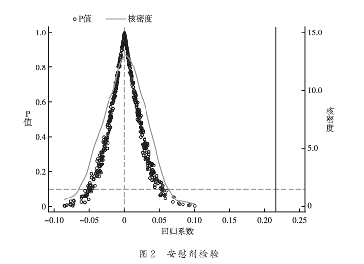 本文通过构造“伪处理组”进行安慰剂检验。随机分配处理组后系数不显著,排除其他因素干扰。