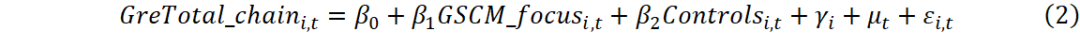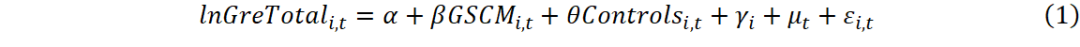 表示为企业在第年的绿色创新水平,用绿色专利申请总数加1取对数衡量。解释变量为企业在年是否入选绿色供应链管理企业名单的虚拟变量,入选试点取1,否则为0。