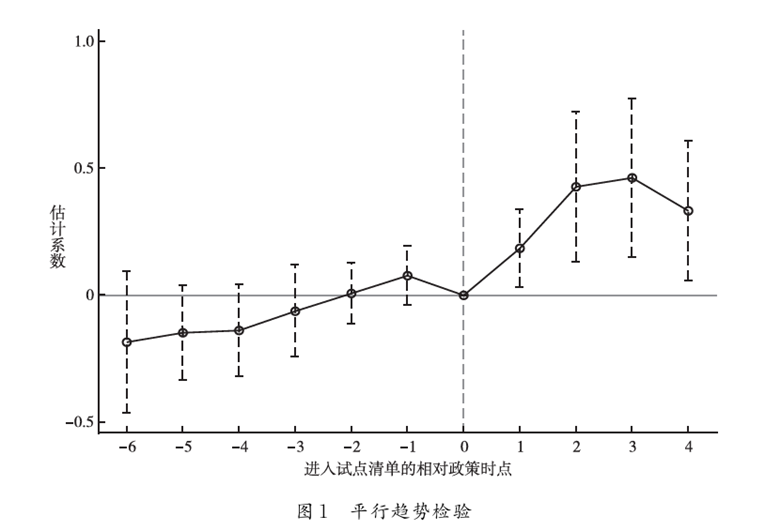 试点前处理组与对照组无显著差异,试点后绿色创新显著提升(图1)。