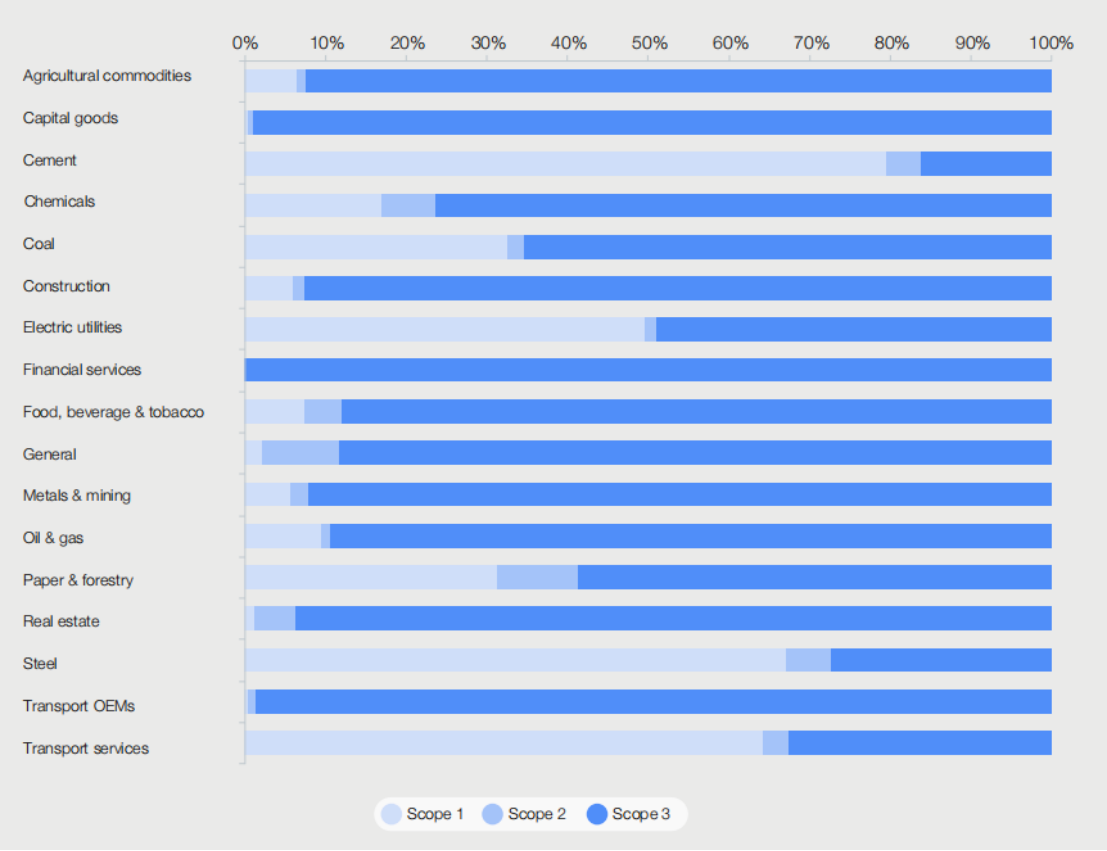 图1:不同行业范围1、范围2及范围3占比
