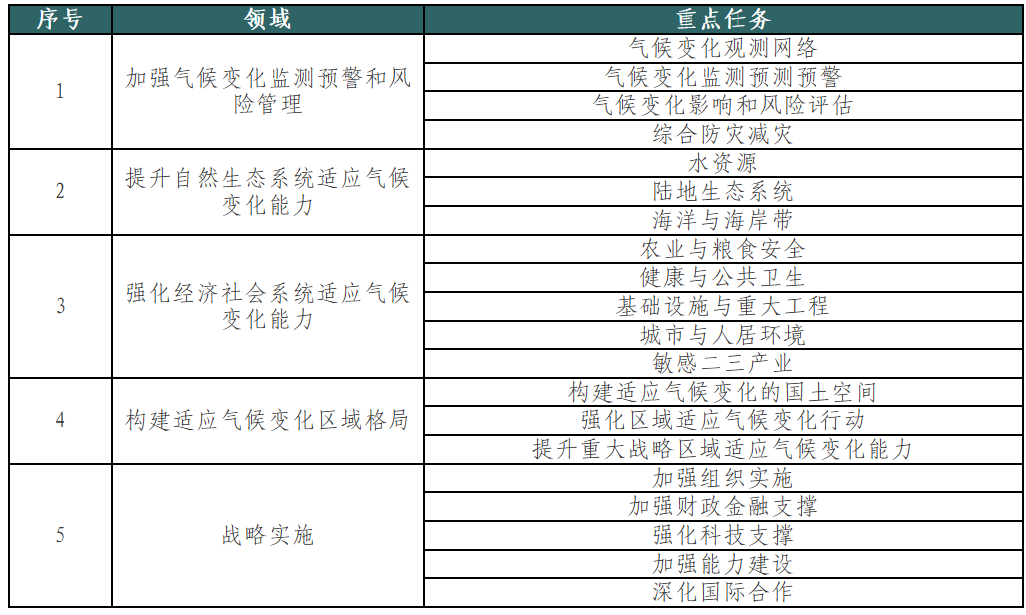 表1《国家适应气候变化战略2035》的重点领域和任务