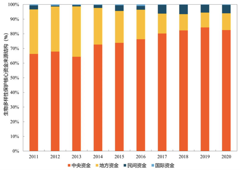 图1 2011-2020年中国生物多样性保护核心资金的来源结构