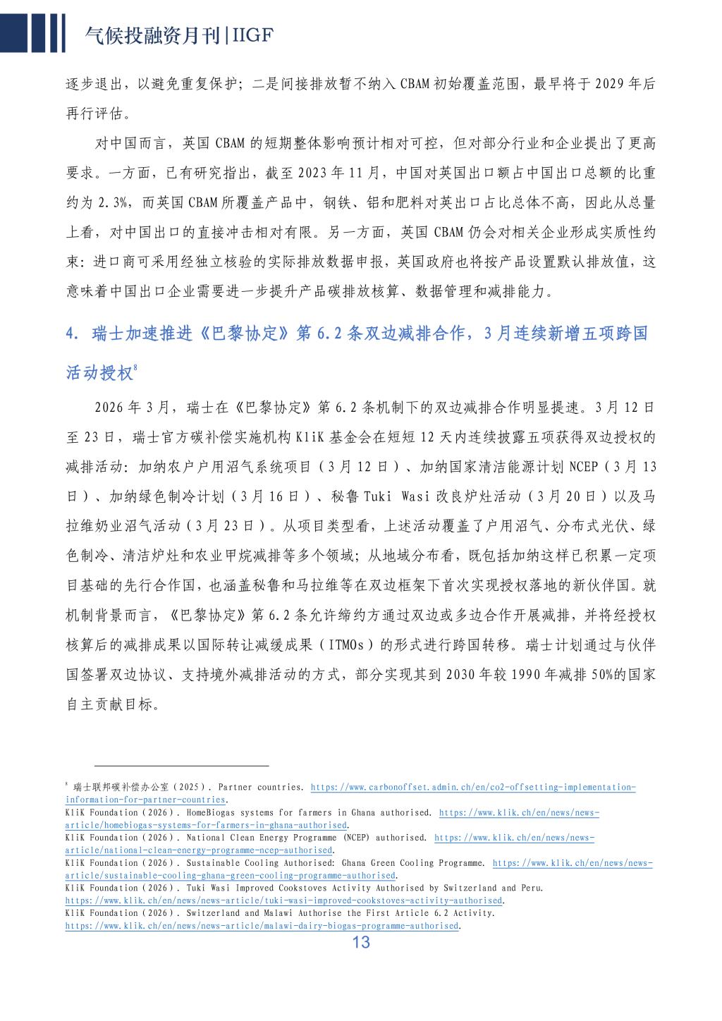 瑞士加速推进《巴黎协定》第6.2条双边减排合作,3月连续新增五项跨国活动授权