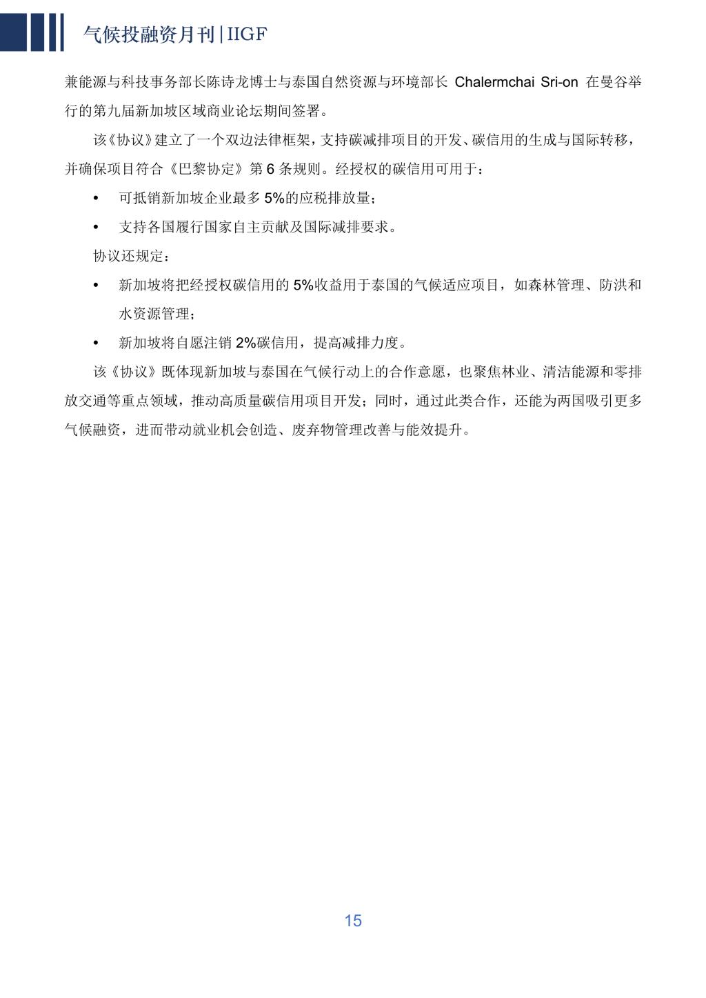 新加坡与泰国签署《碳信用合作实施协议》