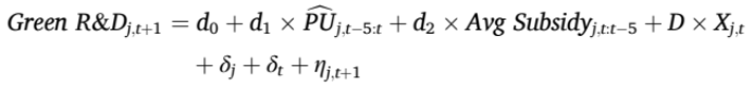 核心解释变量(政策不确定性,PU):采用企业获得的政府环境补贴的波动率衡量。具体做法是估算补贴的一阶自回归模型,取其残差的标准差。模型设计如下: