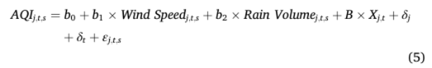 图1的内容揭示了天气波动如何作为“噪音”干扰空气质量评估的机制:风速和降雨的短期变化显著影响AQI读数,尽管本地排放源稳定。这直观说明了政策制定者若依据此类受天气干扰的显著指标进行补贴决策,可能无意中引入非预期的不确定性。