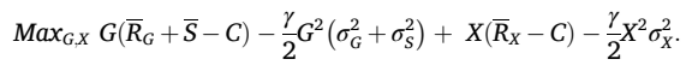 企业的决策目标是最大化期望效用,该效用函数包含风险厌恶项(参数γ表示),这可以被理解为投资的不可逆性、调整成本或管理者风险规避等因素。