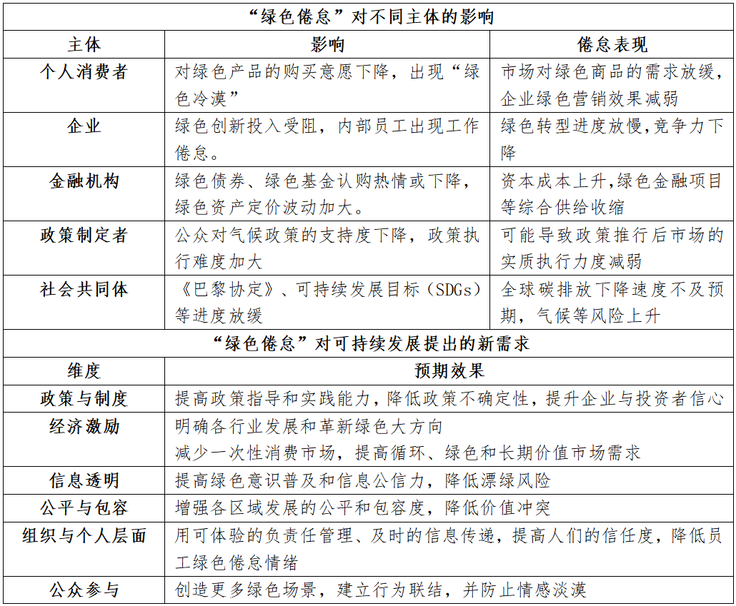 表2.“绿色倦怠”对可持续发展的影响和新需求