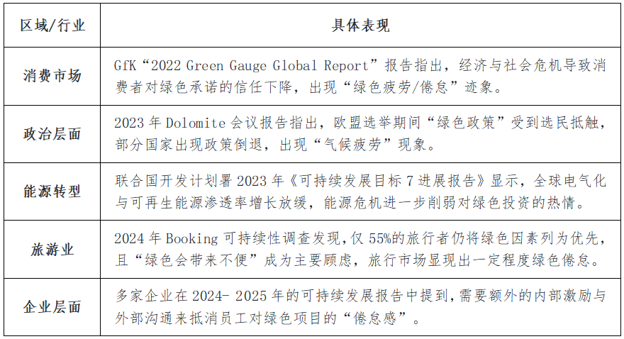表1. “绿色倦怠”在不同领域的体现