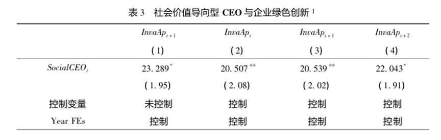 尽管本文通过较为严谨的实证设计验证了社会价值导向型CEO对企业绿色创新的促进作用,但仍存在一定局限性。首先,本文采用CEO是否参与慈善组织作为其“社会价值导向”的代理变量,尽管该指标具有公开、可观测的优点,但其作为单一维度的度量方式仍可能存在内生性偏误。例如,CEO参与慈善组织的行为可能受到其个人声誉等非价值观因素的影响,这可能导致对社会价值导向的识别存在一定测量偏误。其次,样本中具有社会价值导向特征的CEO仅占2.6%,属于少数群体,结论在推广至全体高管时需保持谨慎。未来研究可尝试结合更多元的行为指标(如社会责任言论、环保个人行为等)或实验方法,更全面地捕捉高管的社会价值导向,以增强研究结论的稳健性与普适性。