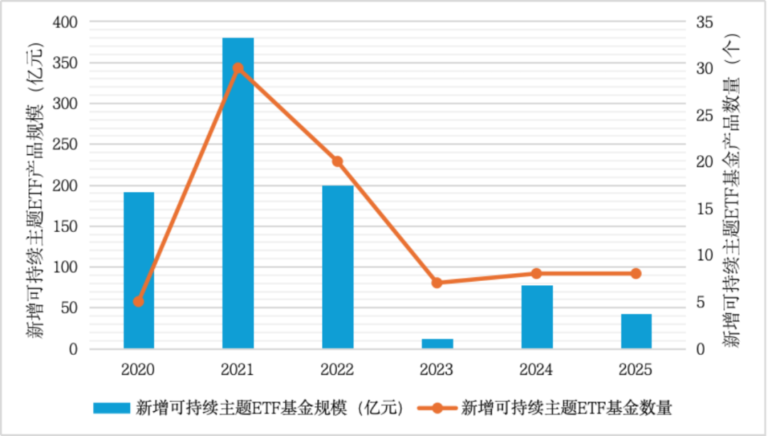 图2 中国可持续主题ETF产品市场趋势分析(2020年至2025年)
