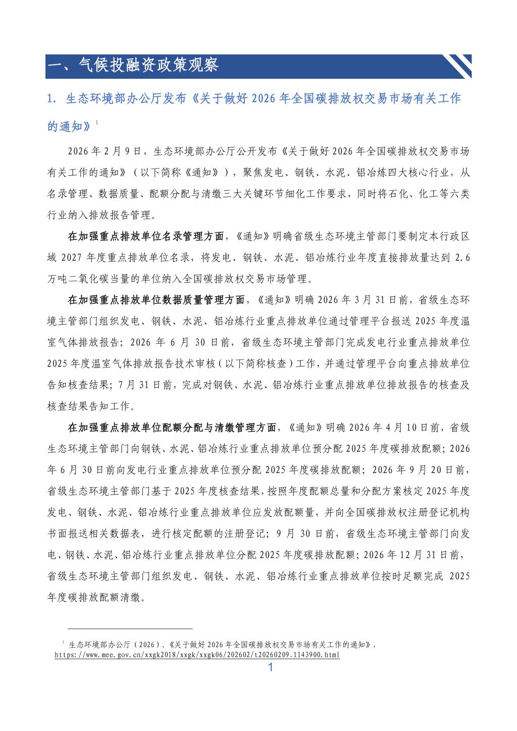 生态环境部办公厅发布《关于做好2026年全国碳排放权交易市场有关工作的通知》