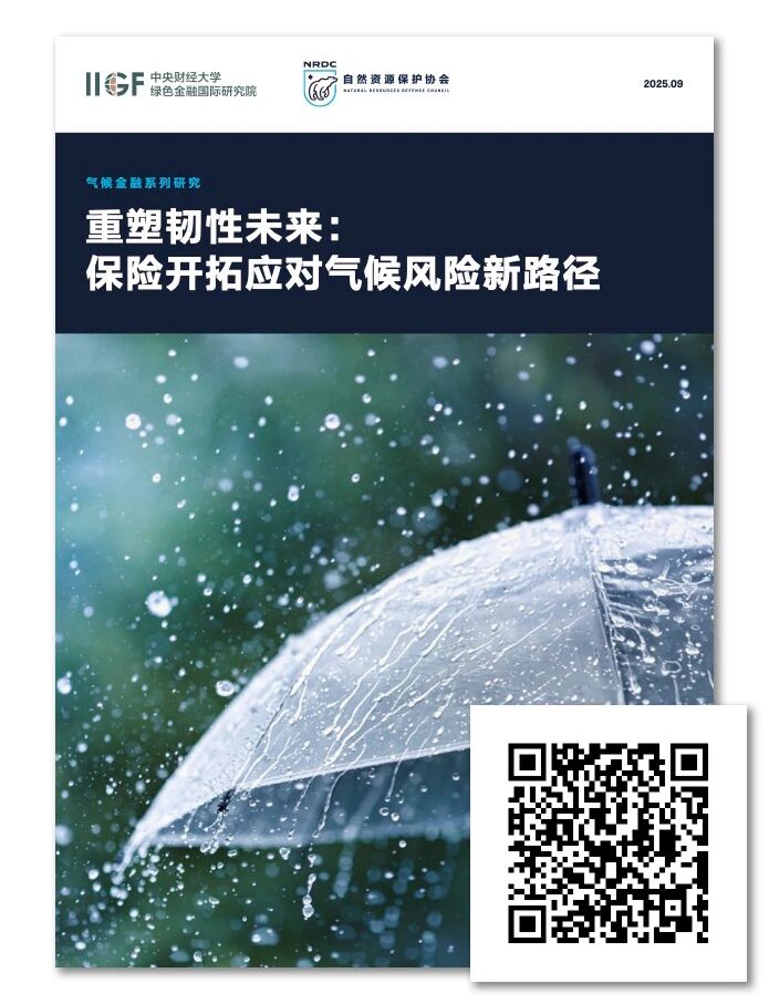 中央财经大学绿色金融国际研究院(IIGF)与自然资源保护协会(NRDC)在会上发布了双方合作完成的报告《重塑韧性未来:保险开拓应对气候风险新路径》。报告聚焦保险在应对气候变化进程中的减震器作用,系统梳理了国际保险业应对气候物理风险与转型风险的最新进展,选取巨灾保险、绿色船舶保险作为创新案例,探讨了气候灾害的风险分担机制,并提出了推动保险更好支持经济绿色低碳转型的建议。