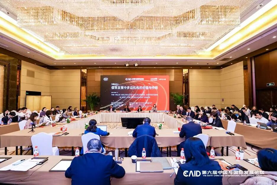 12月8日-12日,由商务部国际贸易经济合作研究院举办的第六届中国与国际发展论坛在北京举行。本届论坛以“赋能与变革:全球南方现代化进程中的国际发展合作”为主题,汇集了来自国内外政商学界代表就国际发展议题展开深入交流探讨。12月10日下午举办的“债转发展中多边机构的价值与作用”专题会议由商务部研究院国际发展合作研究所与联合国儿童基金会驻华代表处联合主办。中财大绿金院国际合作与发展研究中心高级研究员陈翰受邀分享债转发展研究成果并参与圆桌讨论。