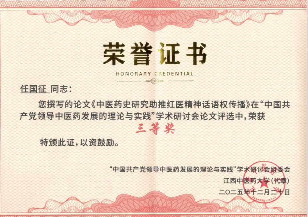 我国医疗健康事业是健康中国战略和积极应对人口老龄化战略的重要保障,是健康金融扶持和服务的重要对象。为此,中央财经大学绿色金融国际研究院健康金融实验室一直将三医改革、中医药发展、医疗融资作为重点研究课题,并推出了系列成果(详见本公众号2023年2月9日、3月9日,2025年3月13日、5月8日)。近日,实验室主任任国征提交的论文先后荣获江西中医药大学等单位主办的“中国共产党领导中医药发展的理论与实践”学术研讨会论文评选三等奖和浙江省伦理学会2025年年会暨“人工智能时代的伦理研究与浙江实践”学术研讨会学术入围奖。实验室课题组专家、清华大学医学部(北京协和医学院)科研处朱钦磊,实验室课题组专家、北京大学医院医生田江华参与了文章的编辑和完善。