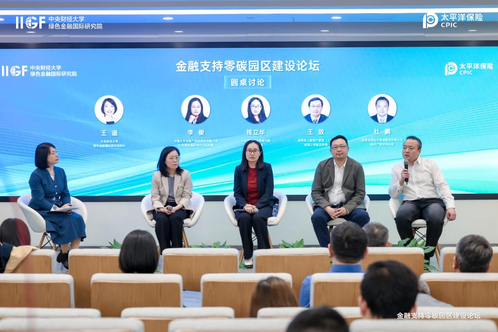 此外,研讨会还设置圆桌讨论环节,由中央财经大学绿色金融国际研究院院长王遥主持,中国太平洋财产保险股份有限公司可持续发展研究中心总经理李俊、兴业银行碳金融研究院常务副院长钱立华、国网英大碳资产管理(上海)有限公司副总经理王放,以及国家电投综合智慧能源有限公司碳资产事业部总监杜鹏针对零碳园区当前或将来可能存在的全生命周期收益与风险不匹配等问题展开讨论,从综合智慧能源解决方案、电力碳核算精细化管理、绿色金融综合解决方案等维度建言献策,共同明晰了技术、运营、金融、风控等多方协同的实践路径。