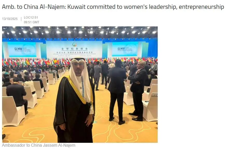 科威特通讯社(KUNA)报道称,科威特驻华大使贾西姆•纳吉姆在全球妇女峰会开幕式上强调,科威特希望加强与中国和联合国妇女署的合作,以实施联合项目,在各个领域提升科威特和阿拉伯妇女的能力。他指出,此次峰会是一个重要平台,能够重新推动全球对妇女赋权及包容性发展的承诺。他强调,科威特全力支持为妇女建立一个更加公平、繁荣的世界所做的努力。