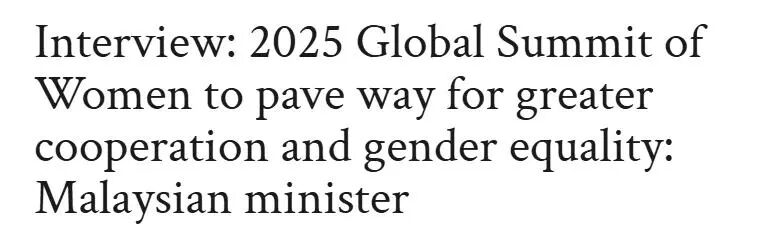 马来西亚妇女、家庭和社区发展部长南希•舒克里在马来西亚《太阳报》发表文章指出,她赞赏中国在促进妇女发展方面所做的努力,以及在促进全球性别平等方面发挥的积极作用,还注意到中国在消除贫困、推动企业发展以及开展有效国际合作方面取得的成功。她表示,马来西亚和中国有着长期的合作伙伴关系,这种关系也延伸到了妇女发展领域。两国致力于通过交流经验、分享最佳实践,以及在领导力培训、创业、教育和社会保护等领域开展合作,促进妇女赋权。